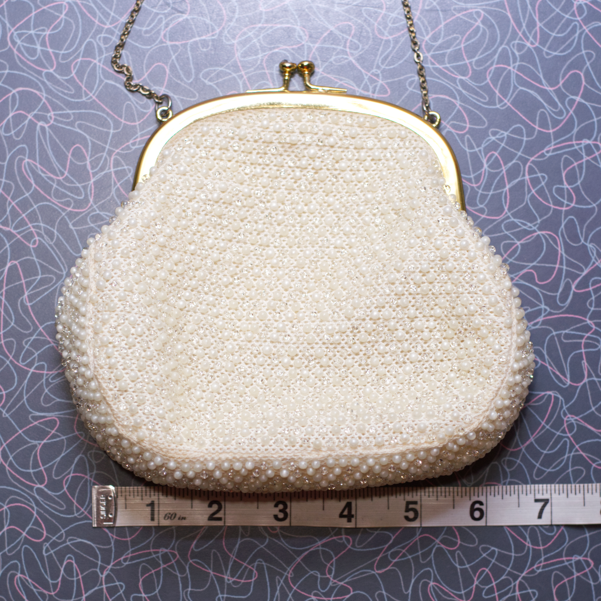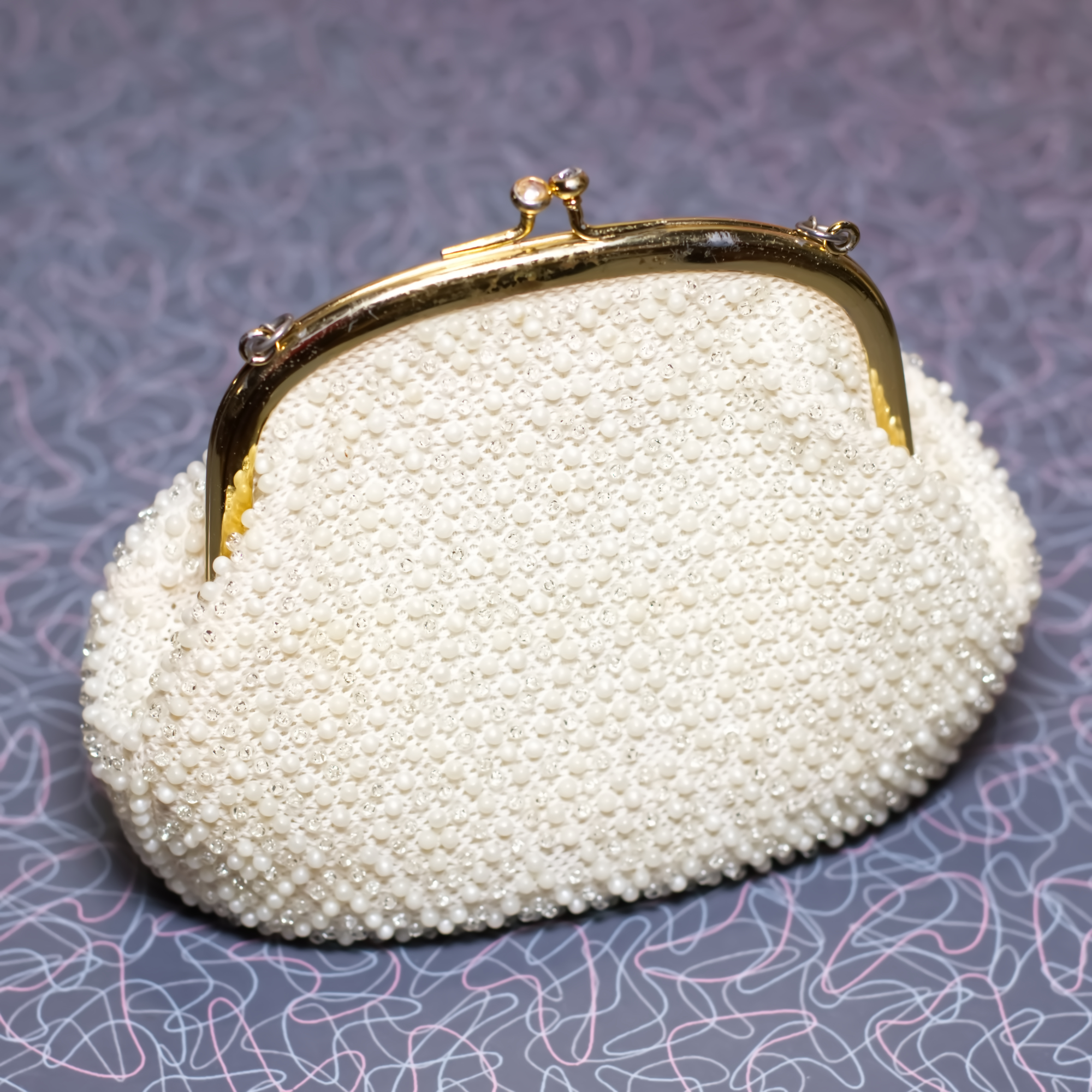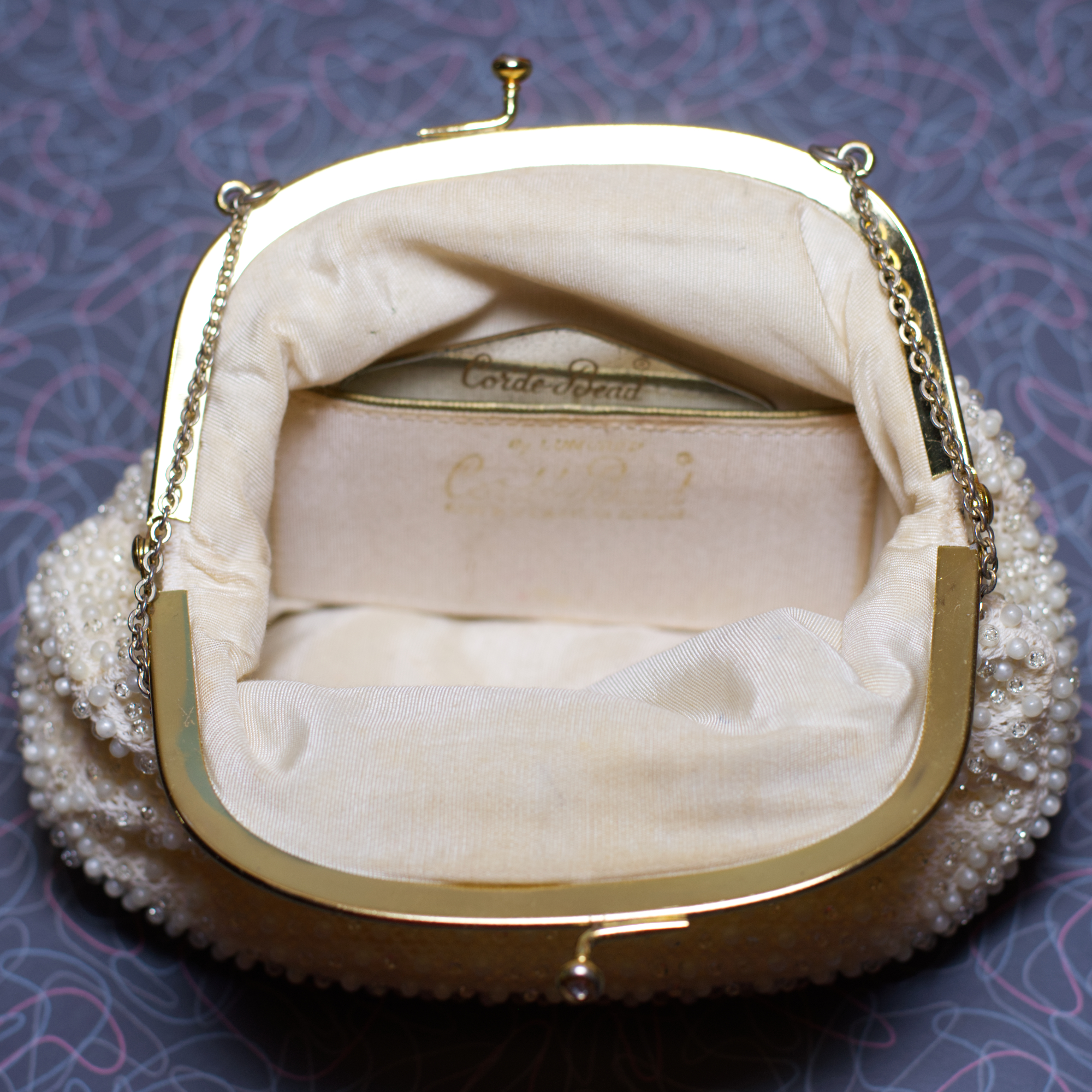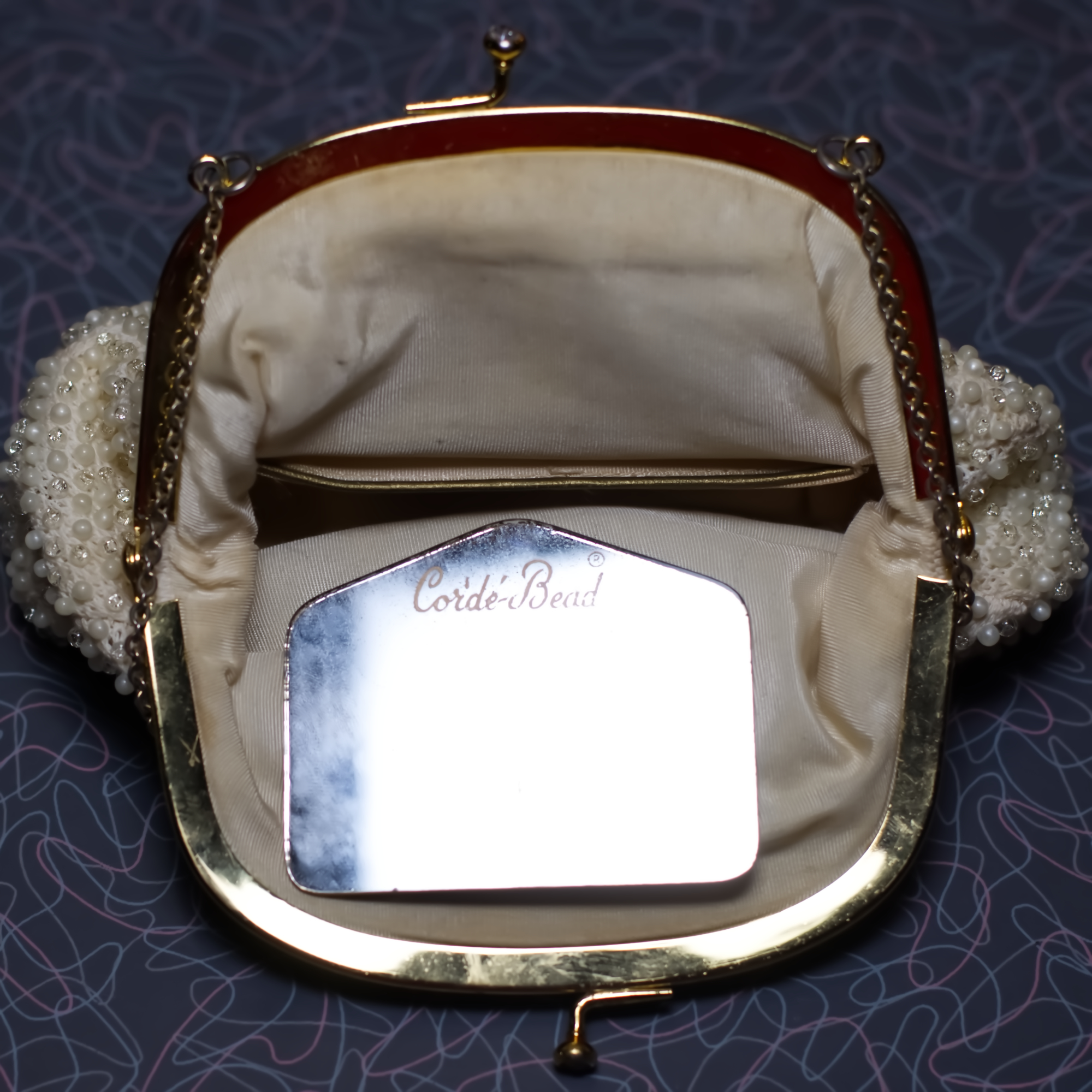 Beautiful 50s Corde Beaded kiss clasp purse. Includes the original pocket mirror.