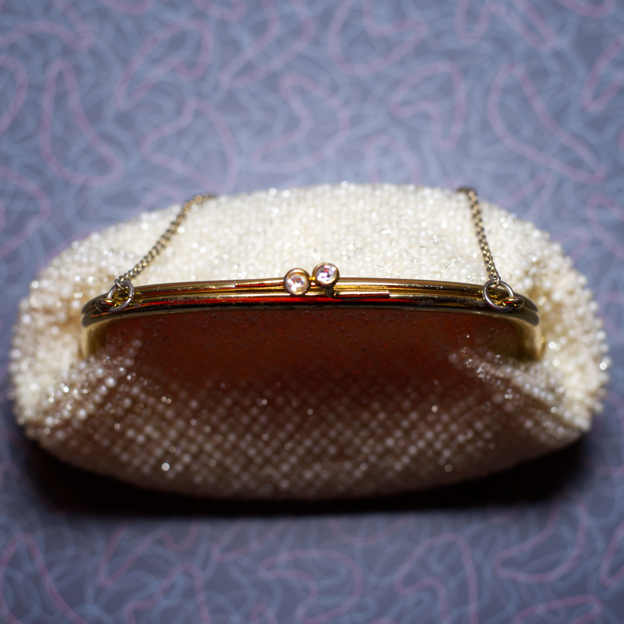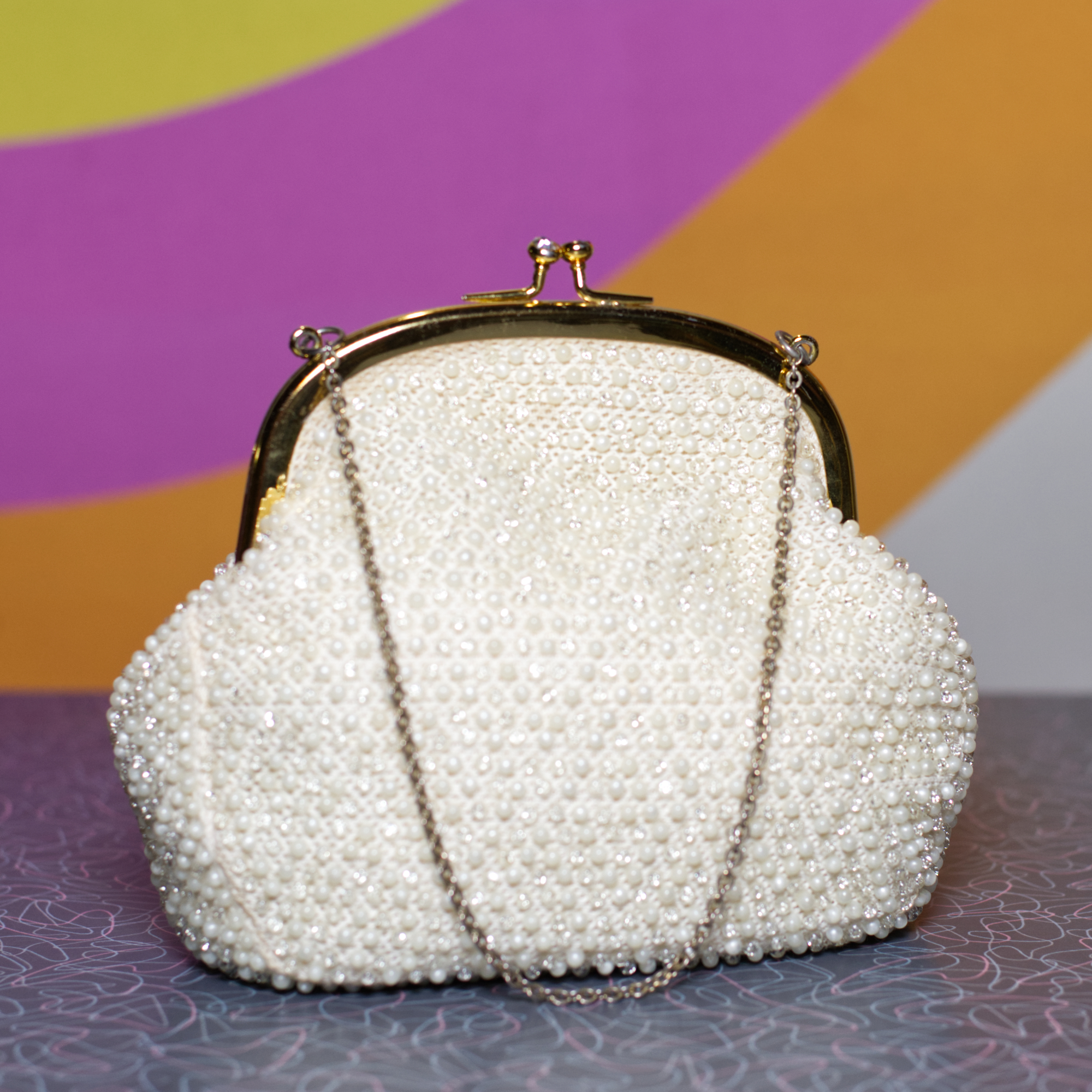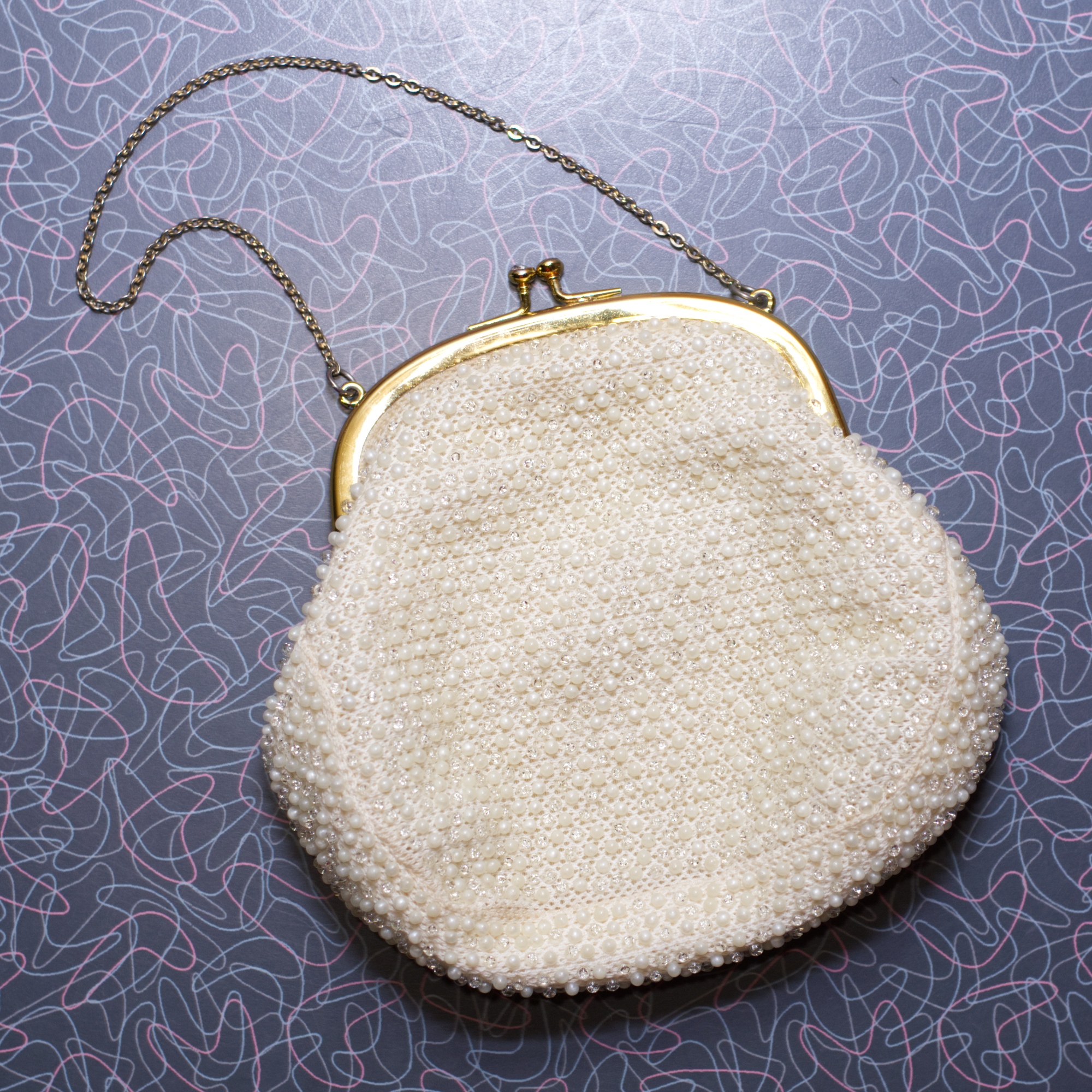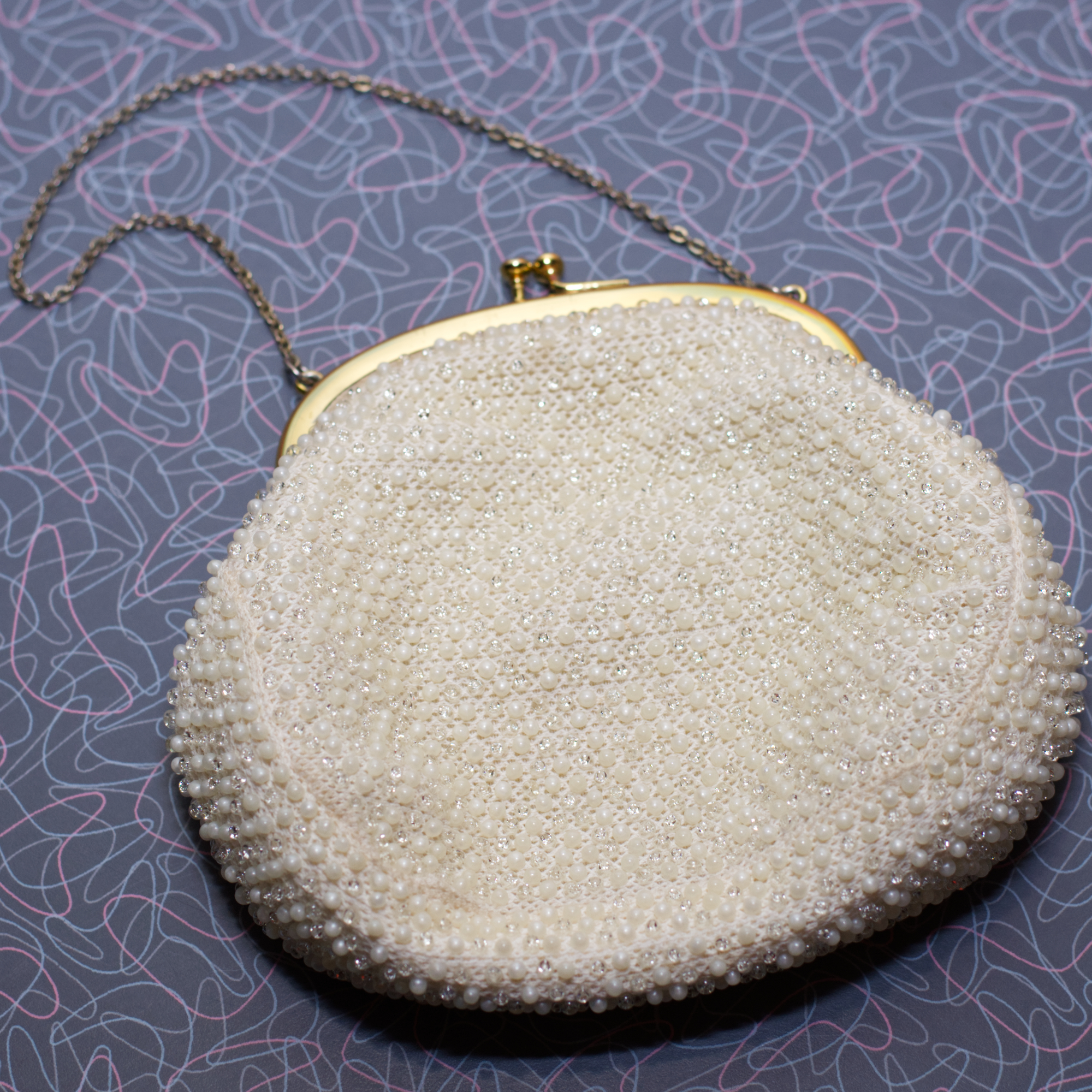 Beautiful 50s Corde Beaded kiss clasp purse. Includes the original pocket mirror.