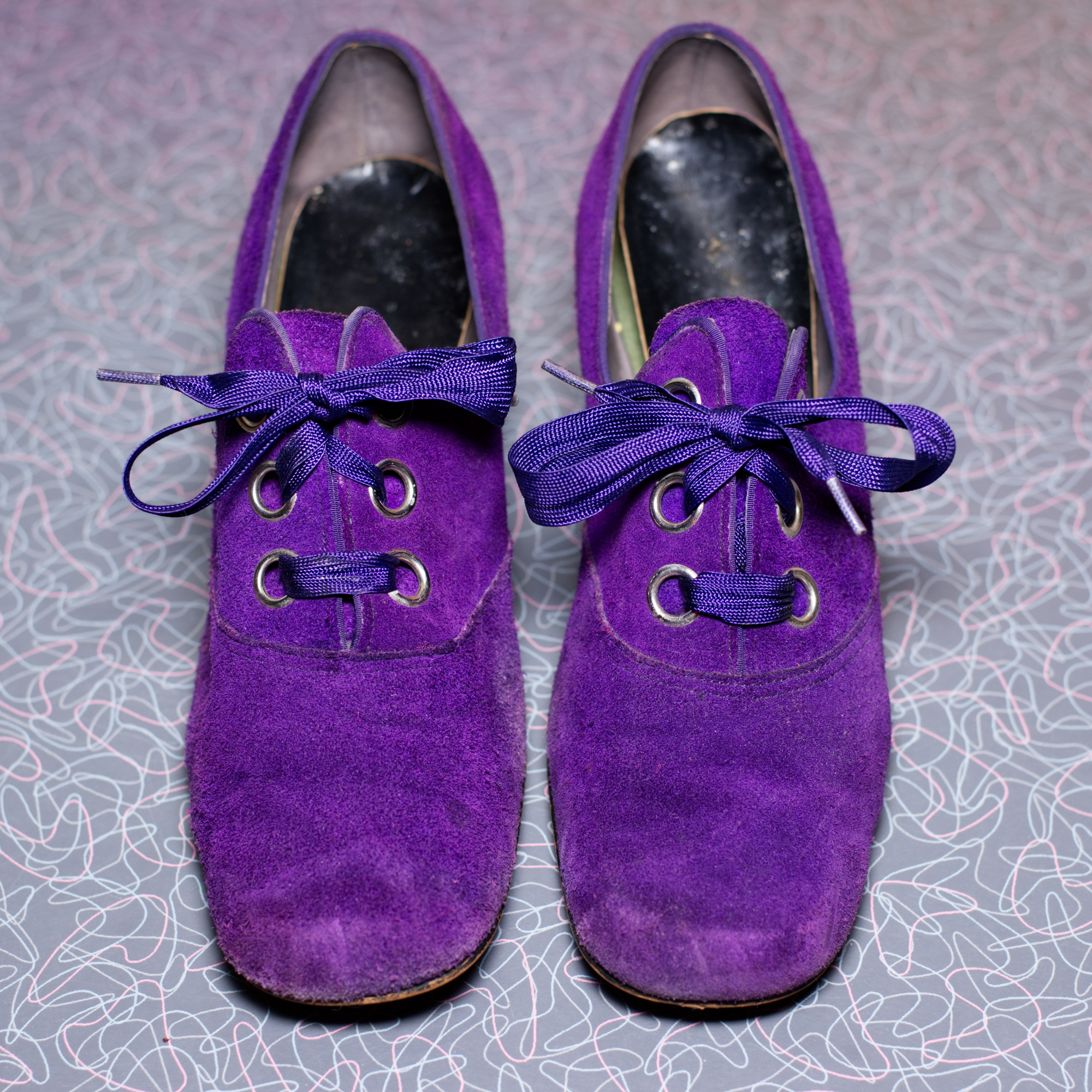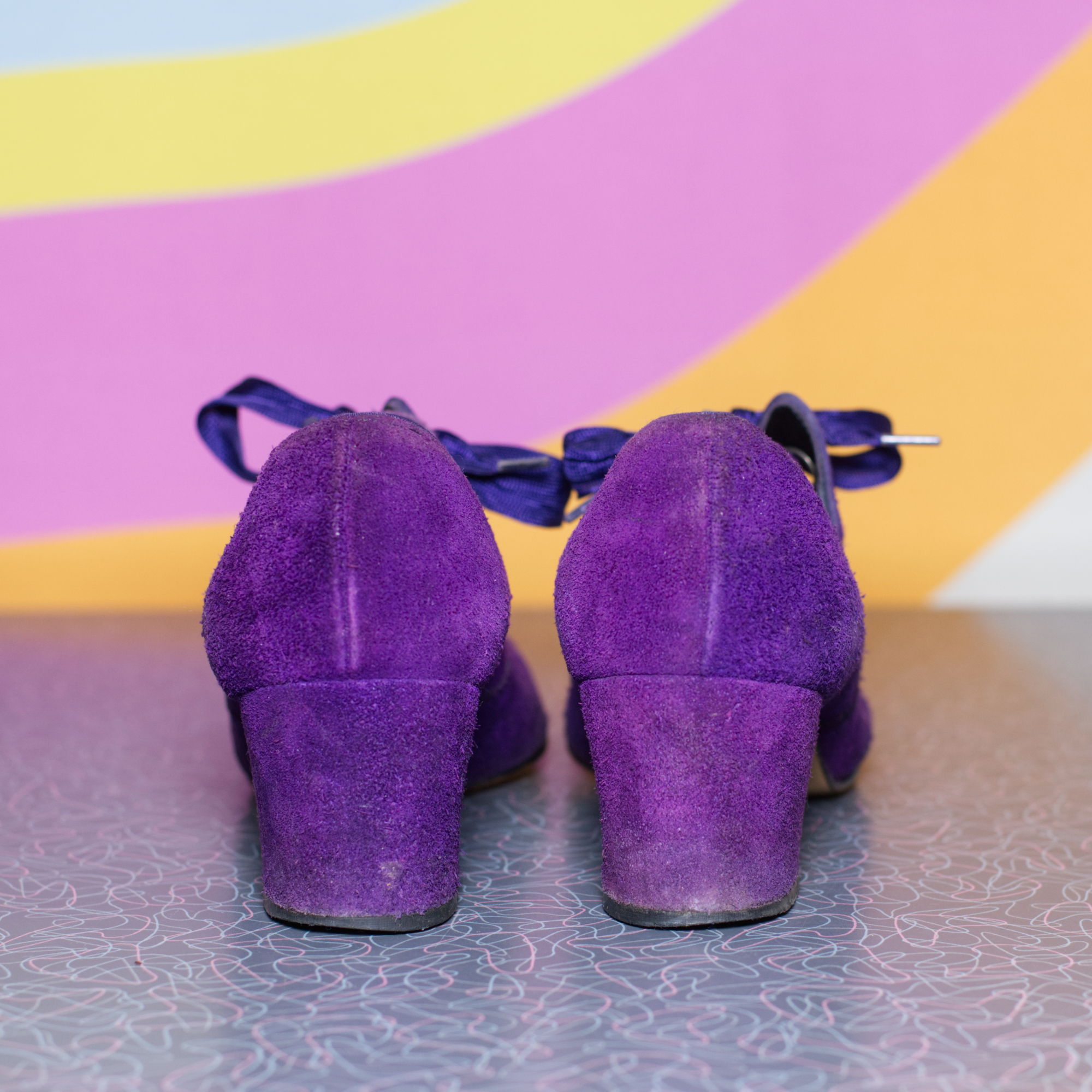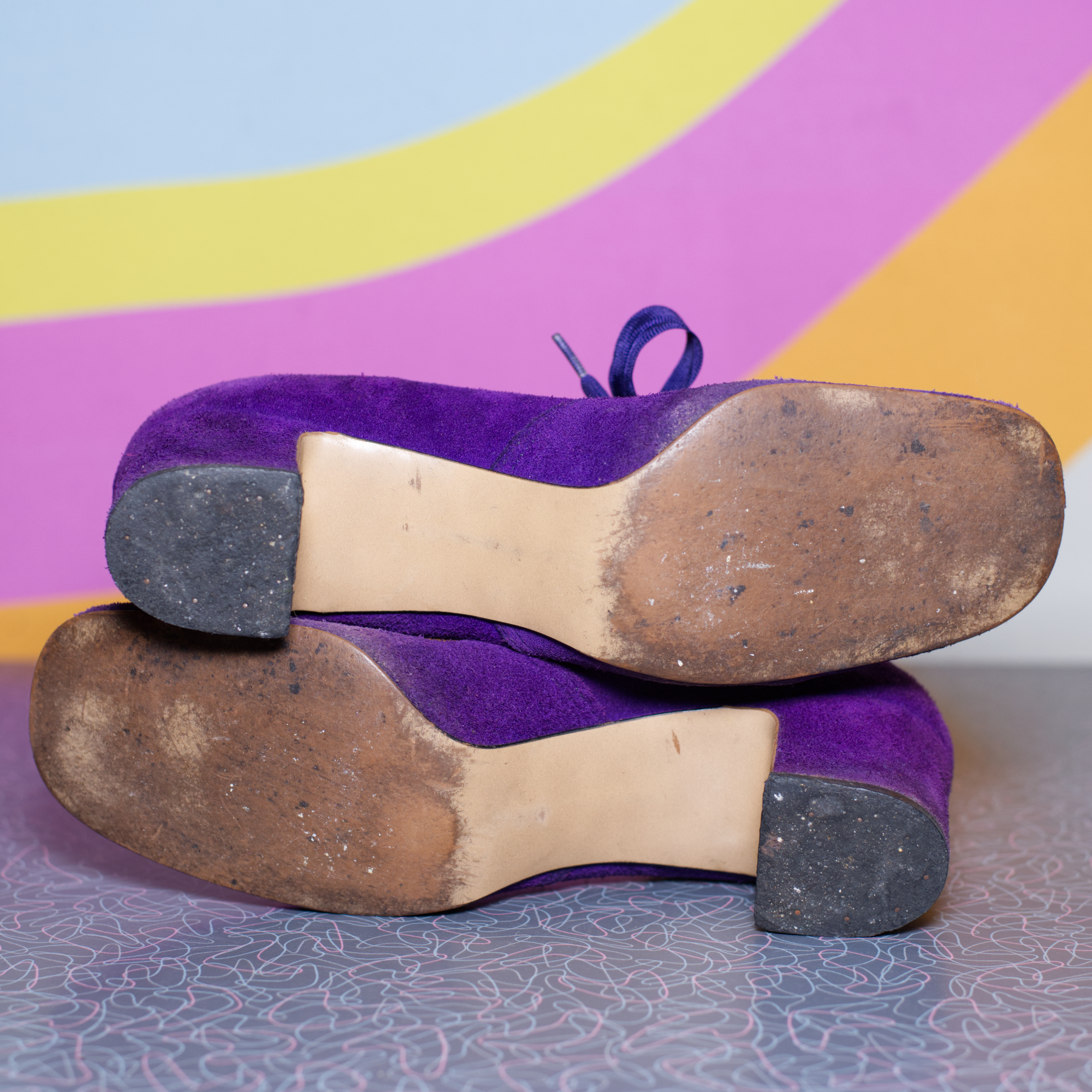 Super cute late 60s/early 70s purple suede lace-up shoes.