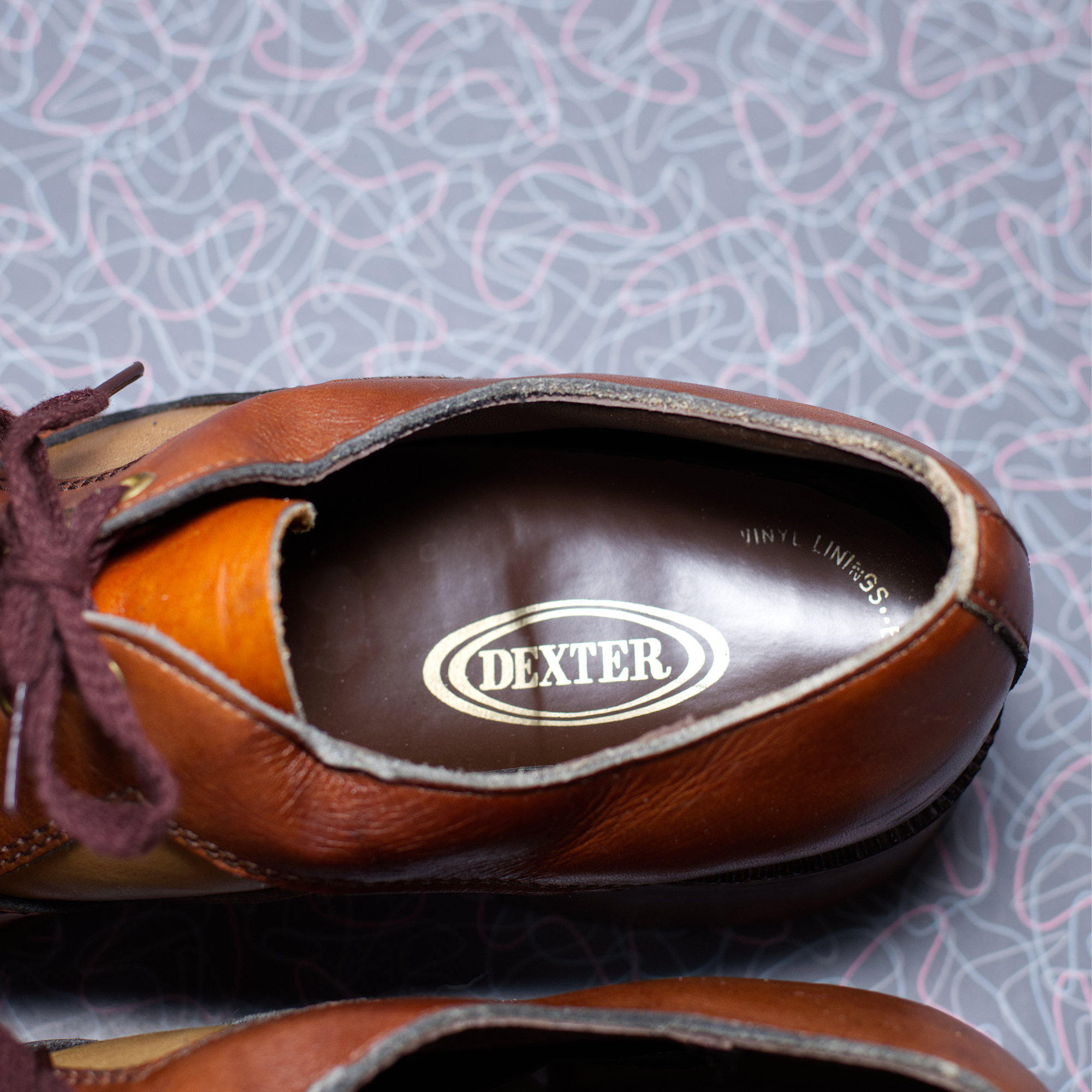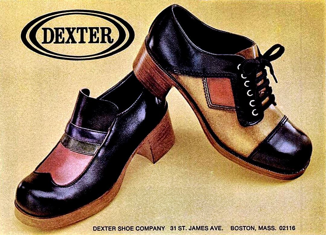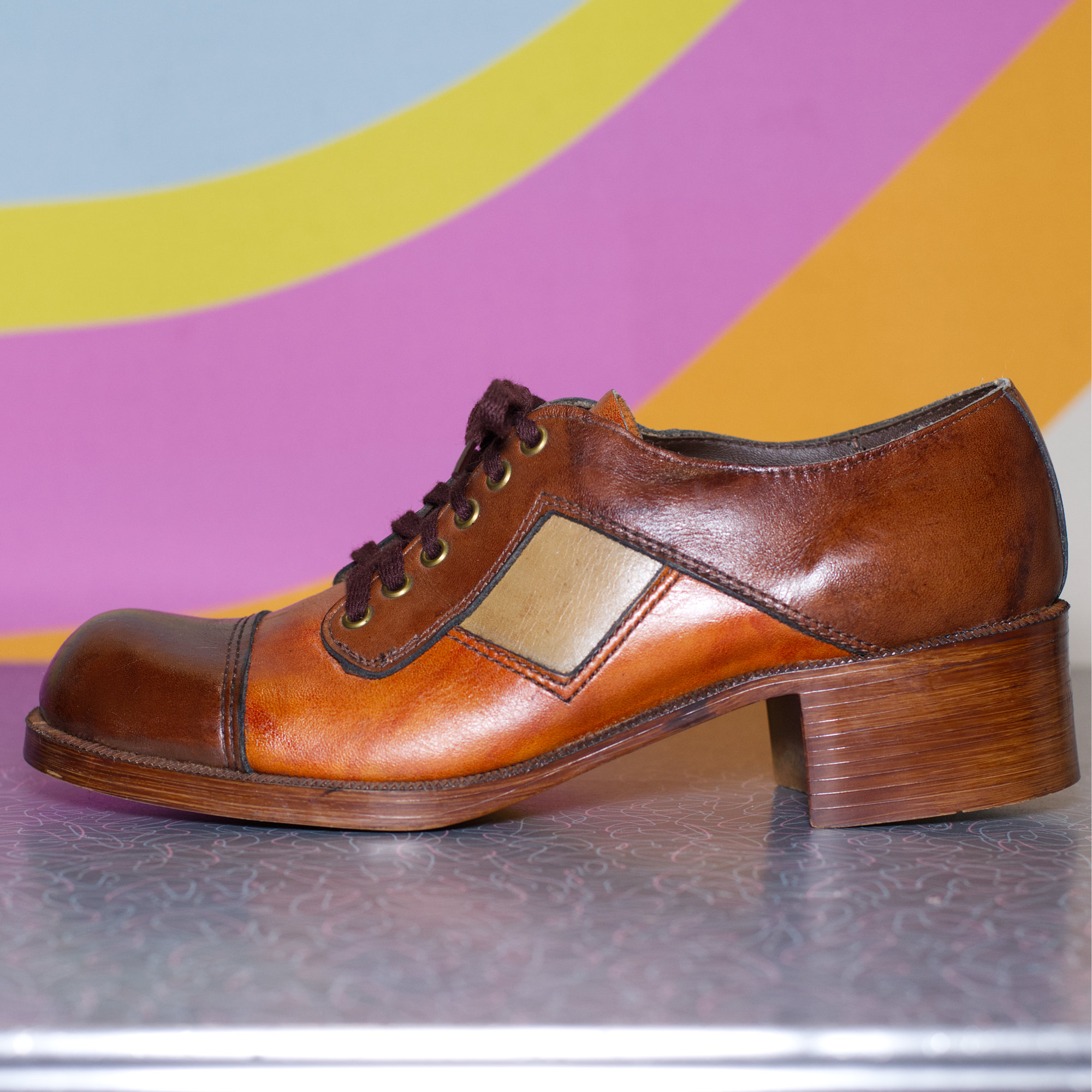 AMAZING early 70s tri-tone brown leather stacked wood block heel oxford shoes.