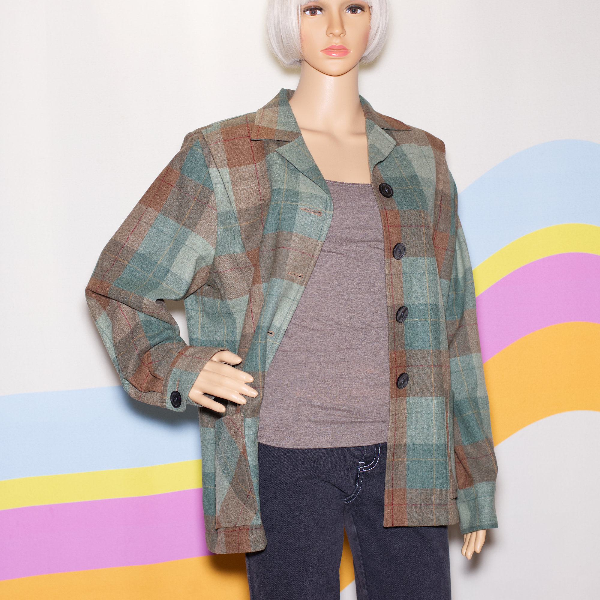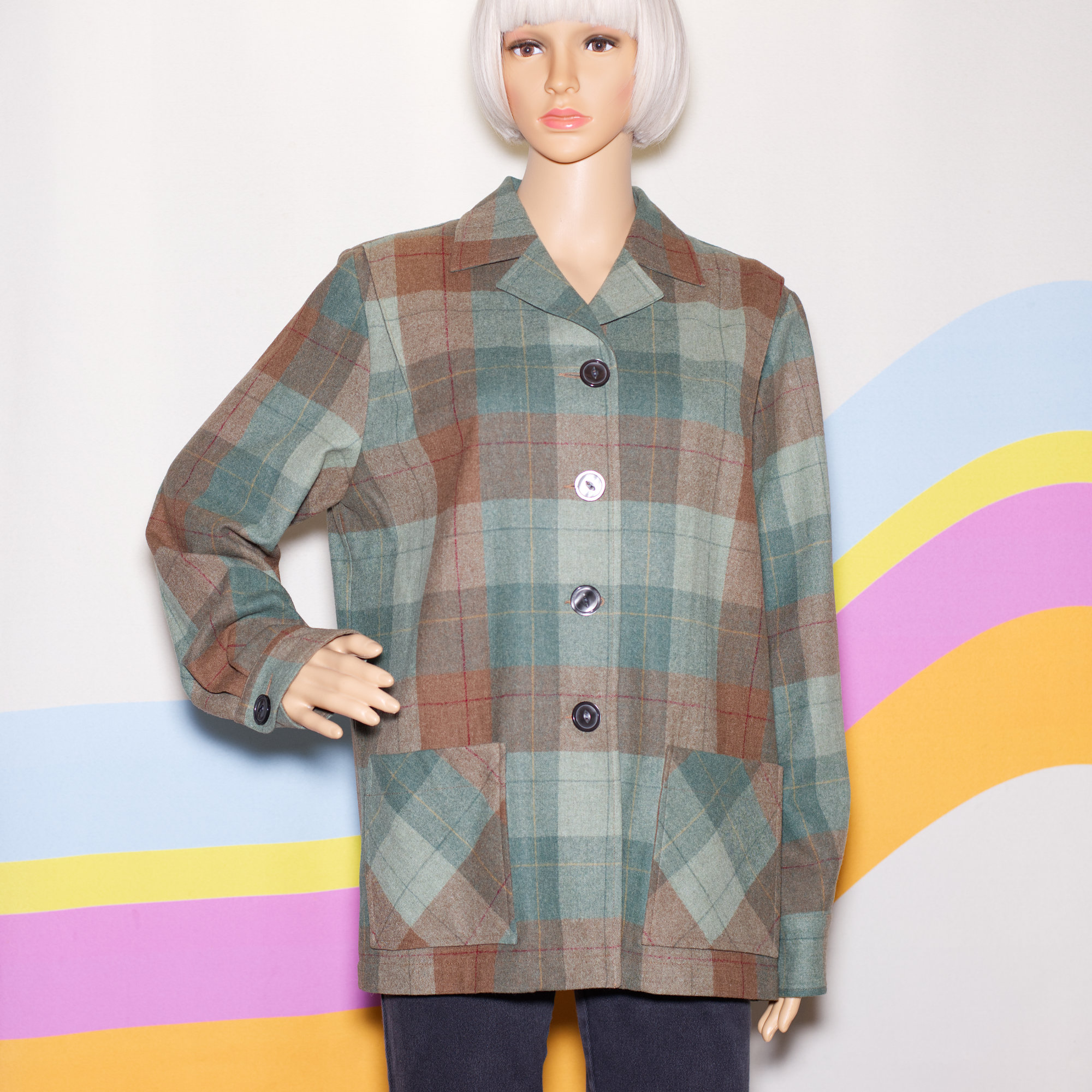 Classic 90s green and brown wool plaid shirt/jacket, made by the iconic Pendleton. This shacket is inspired by the well-known Pendleton 49er jacket.