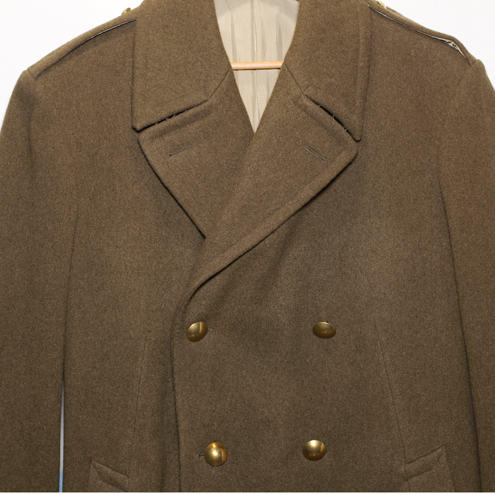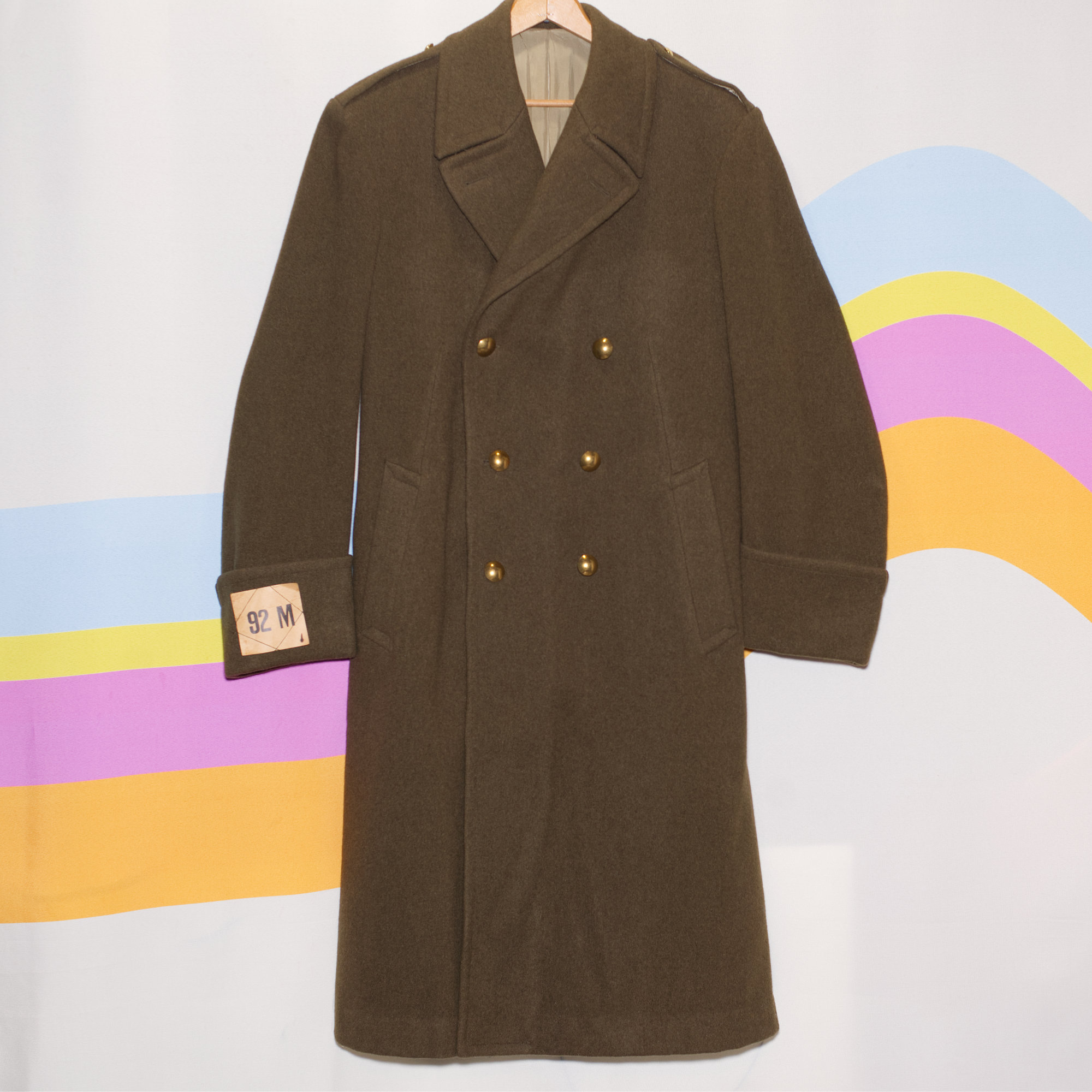 A RARE find, with the original tag still attached. This is a beautiful 1983 French military, double breasted, wool coat.